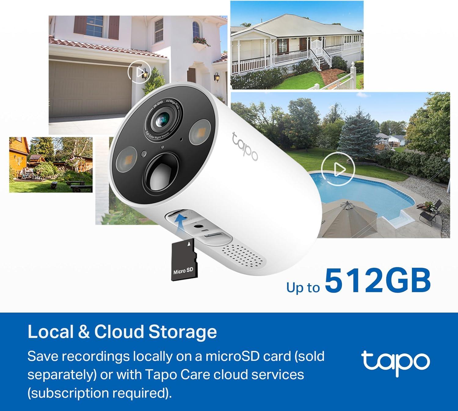 【Versatile Video Storage】Store footage locally via a microSD card (up to 512GB, sold separately)* or via cloud with a Tapo Care cloud subscription. Tailor your security to suit your needs,
