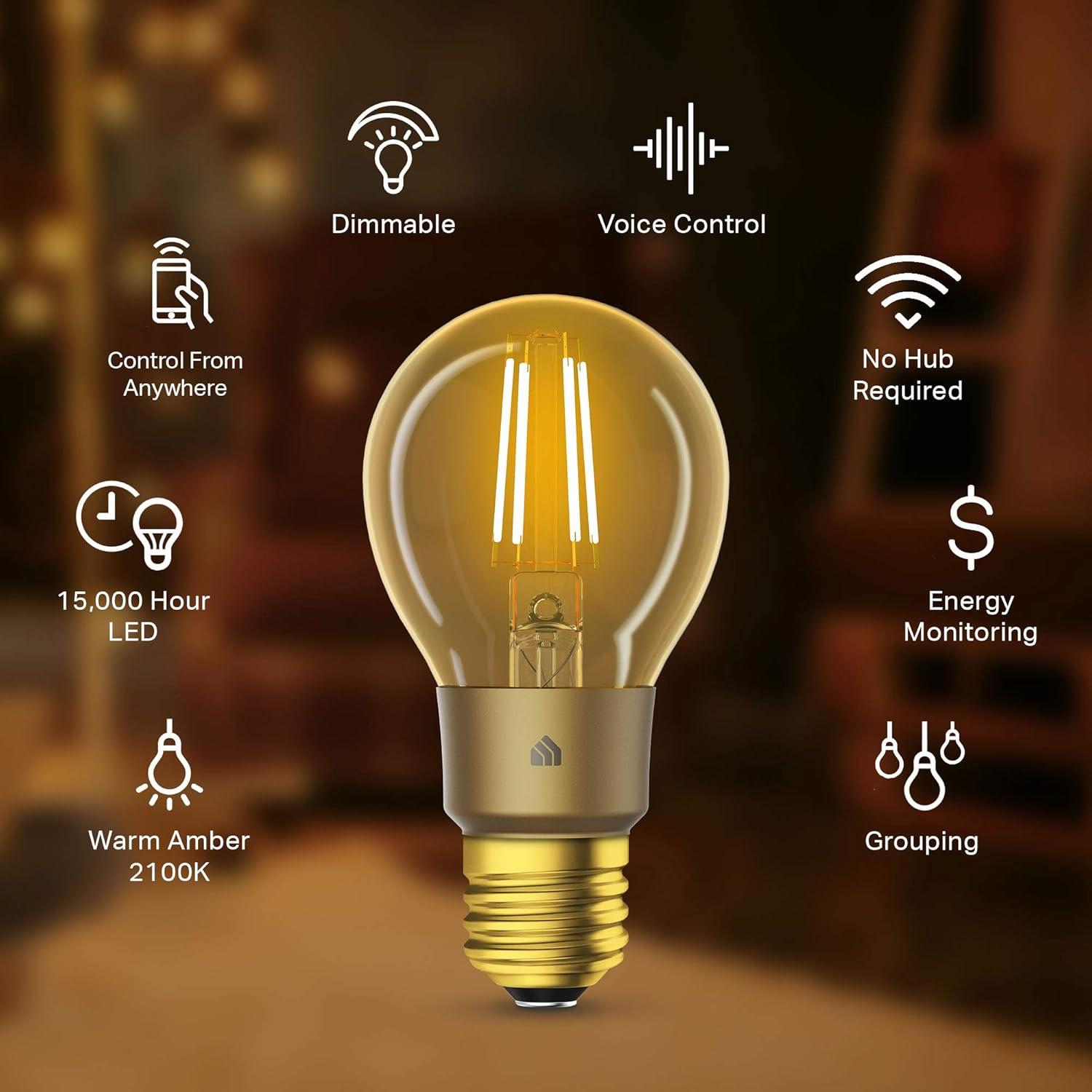 Set the Mood with Timeless Style; Turn up the brightness to liven up the party or dim the lights for a romantic evening; The 40 Watts (400 lumen) Kasa LED filament bulb lets you set the mood with a vintage aesthetic infused with modern technology, all from your smart phone